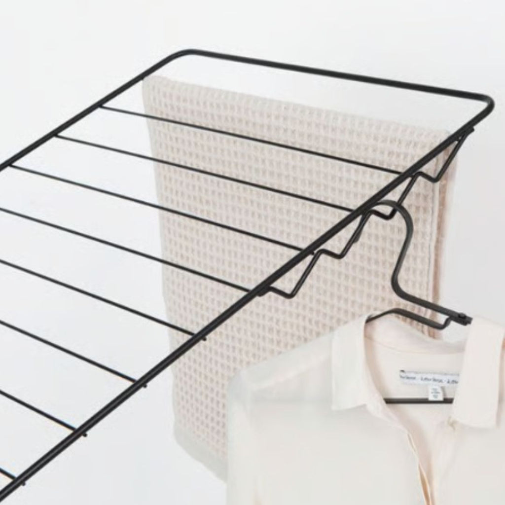 Save time and energy by drying your laundry naturally - and save space by hanging them on this smart rack! With 25 meters of flexible drying space, and room for 8 extra clothes hangers, this Brabantia HangOn Drying Rack sure is spacious. And when all’s dried and done, fold it flat easily for compact storage. Let's hang out!