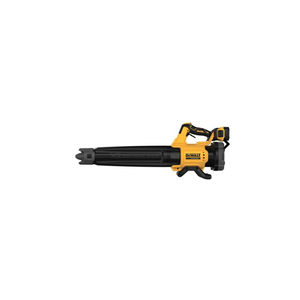 The DCMBL562 is a cordless, battery powered professional blower that makes use of a brushless motor (offering increased runtime, less wasted energy, increased performance and less motor wear). It's an impressive blower that has an air volume output of 400CFM, (Cubic feet per minute). The air speed is up to 90mph at full power. The brushless motor means that this upgrade will last longer per battery charge and delivers slightly more powerful performance.