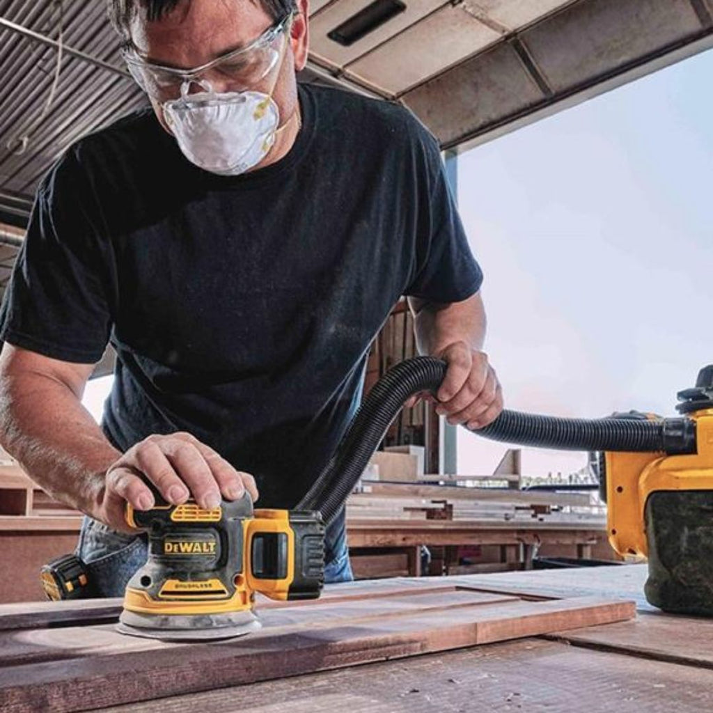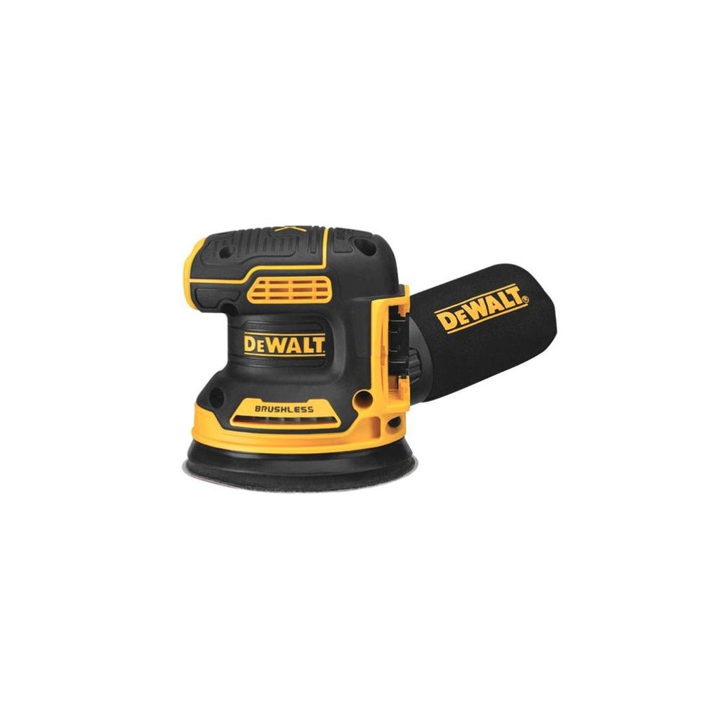 DeWALT DCW210N-XJ 18 Volt XR Brushless Random Orbital Sander Body Only The DCW210 enables DeWALT XR 18 volt Power Tool users to tackle random orbital sanding applications without having to rely on power leads or trailing extensions. Equipped with a 125 mm hook and loop sanding pad and a dust skirt for improved dust collection and extended sanding disc life, the DCW210 also benefits from an energy efficient brushless motor, dust sealed components, a textured anti-slip housing, variable speed control and a dust extraction port which can be connected to an external dust extractor or used with the included fabric dust bag.