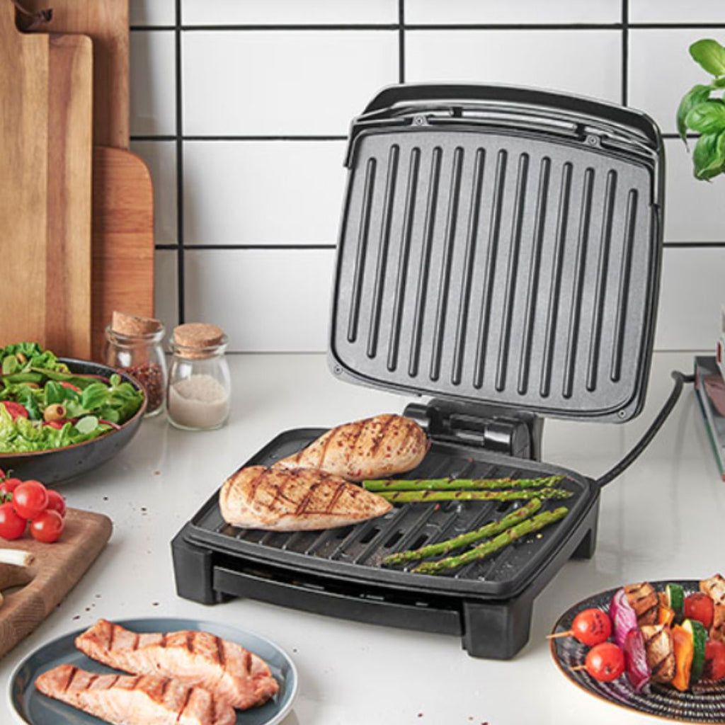 Thanks to its game changing design, and removable control panel, the World’s No1* grill is also the World’s No1* washable grill with dishwasher safe plates. In one step you can simply remove the hinge and seal so that the whole grill can be put into the dishwasher or fully submerged in the sink.