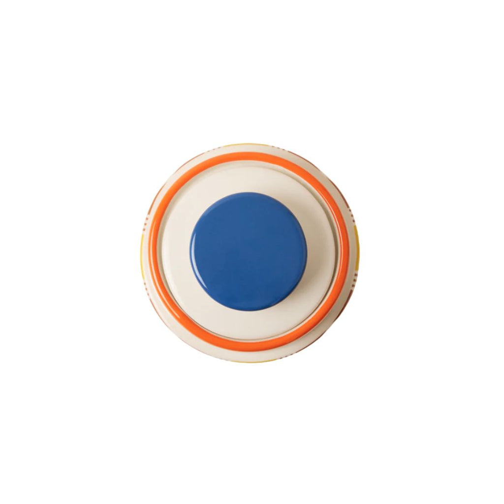 Get your kitchen organised with a bright pop of pattern with the Orla Kiely Aura Storage Jar. Designed in London, this ceramic jar features Orla’s bold Aura print in a cheerful mix of yellow, green, blue and navy. With its pop-colour lid and secure airtight seal, it’s perfect for keeping tea, coffee, sugar or snacks fresh while bringing a playful touch to your countertop.