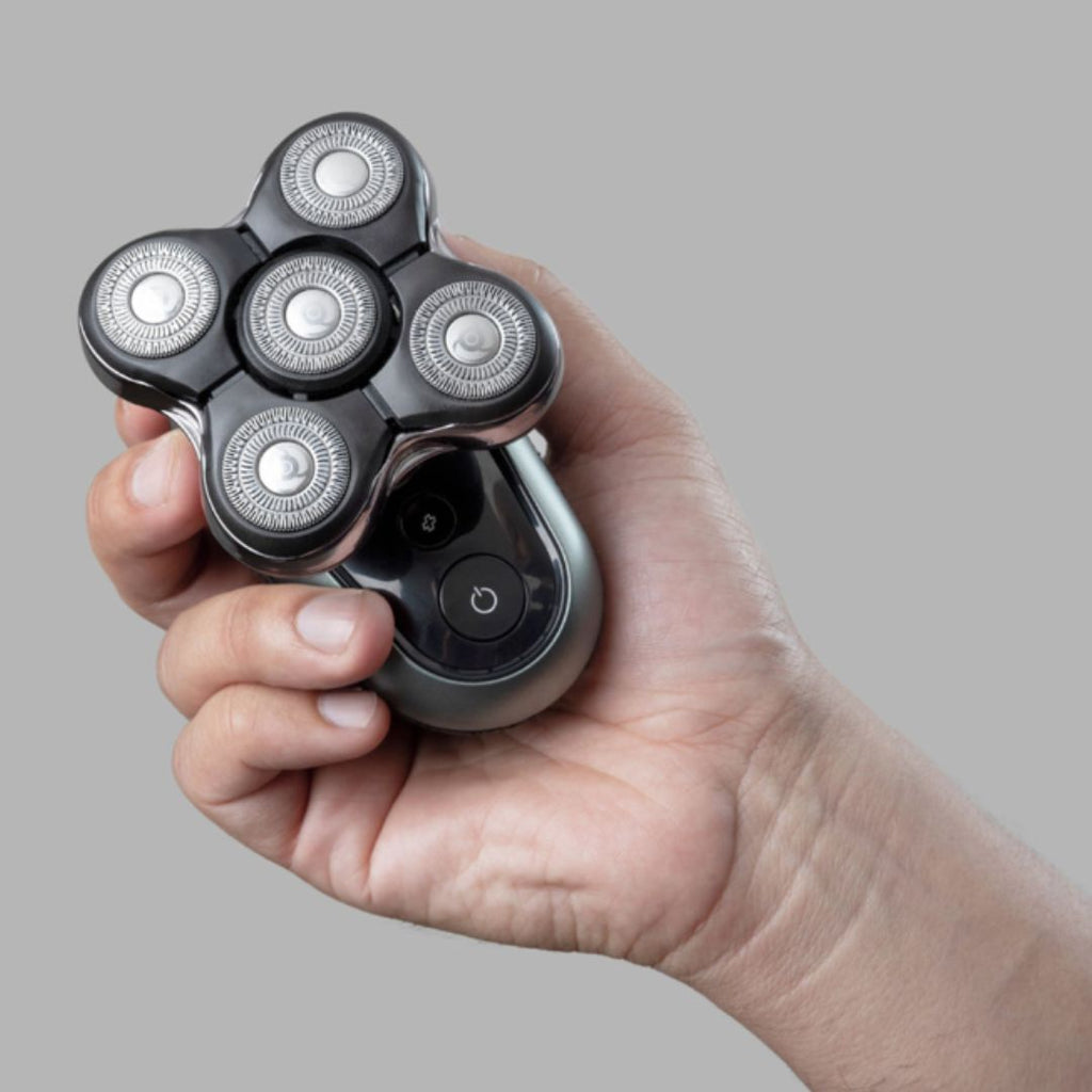 Embrace the trend for a perfectly shaved head or tidy up your existing style with the Ultimate Series RX7 Head Shaver. The RX7 has everything you need for effortless, comfortable head shaving. 5x Cutting Heads offer 30% more flex* for maximum contact and quick results. While Dual Track Blades shave hair to as short as 0.2mm the Turbo Speed Function is designed to tackle denser hair growth for an even all-over finish. The Ultimate Series RX7 Head Shaver can get the job done in less than 2 minutes*** so with up to 60 minutes’ usage time, that's over a month** of head shaving from a single charge. With Flexing Blades, a Pop-Up Trimmer and an LED countdown so you can see how much charge is left, it’s never been easier to stay on top of your style.