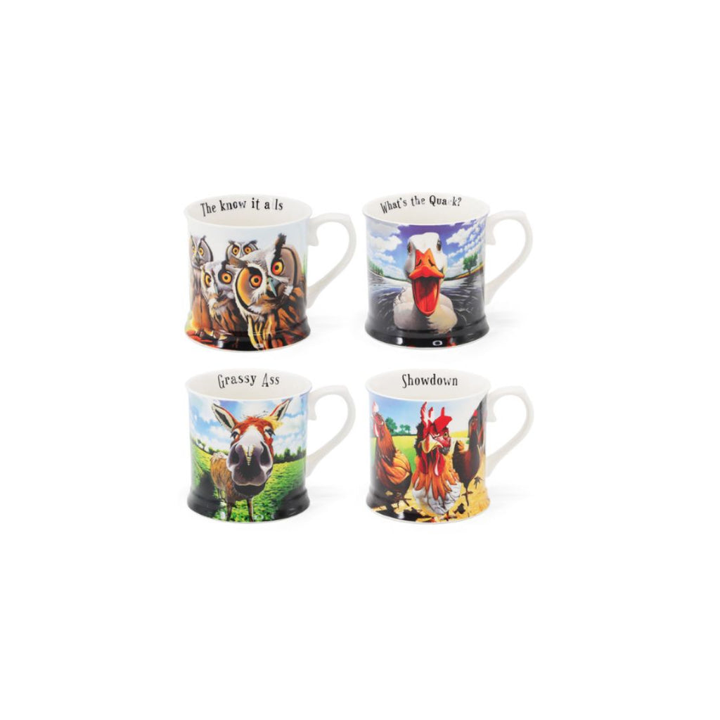 Get ready to crack a smile with the New Beyond the Herd collection, a delightful series of 12oz tankard mugs by artist Eoin O'Connor! This set of four mugs features a charming mix of Irish animals—owls, donkeys, ducks, and chickens—each with their own playful personality and punny twist.